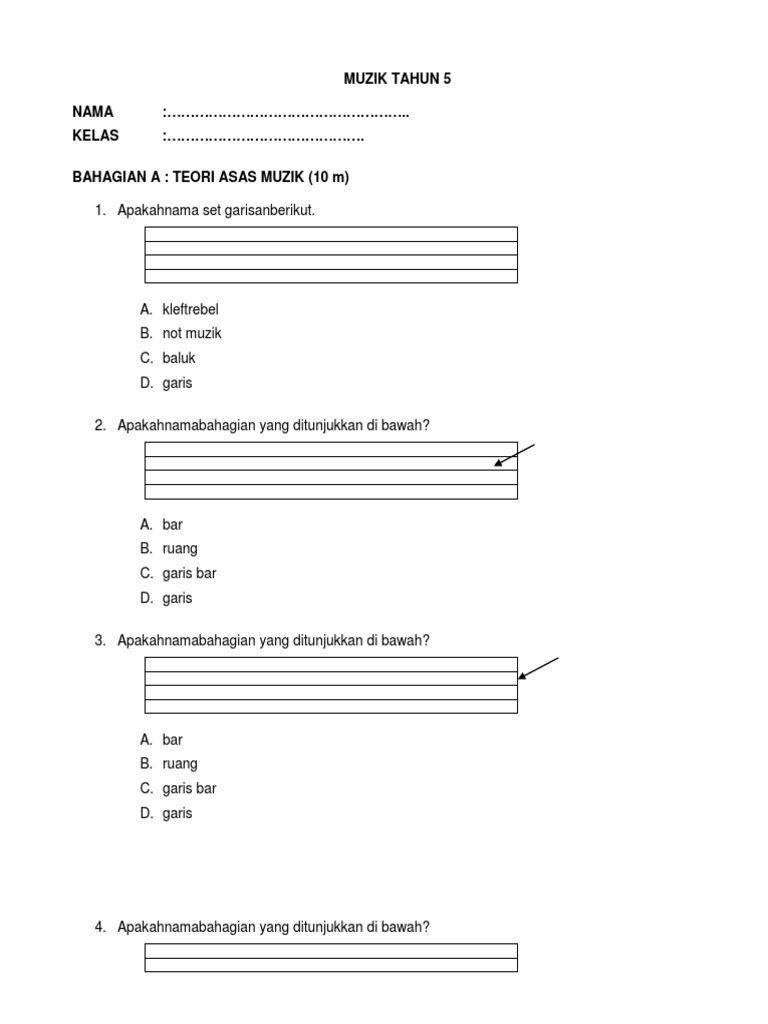 Sangat lemah dalam menguasai kemahiran asas teori muzik. Soalan Muzik Tahun 4 5 6. 4 markah b Nyatakan tiga jenis permainan kognitif dan berserta contoh yang bersesuaian.