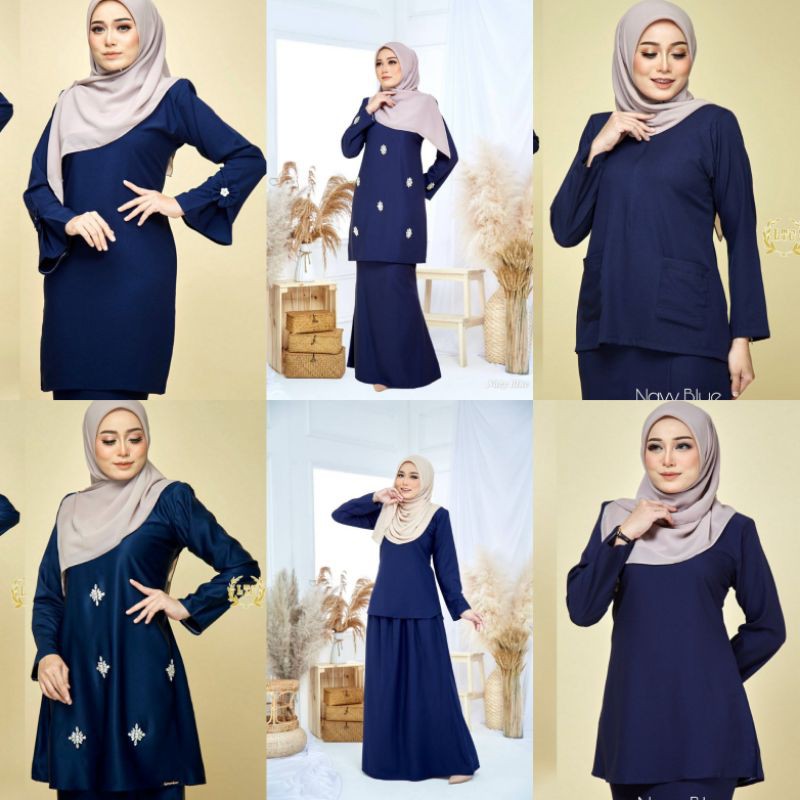 Navy Blue Baju Kurung Moden Riau Kedah Basic Plain From S Plussize 5xl Shopee Malaysia